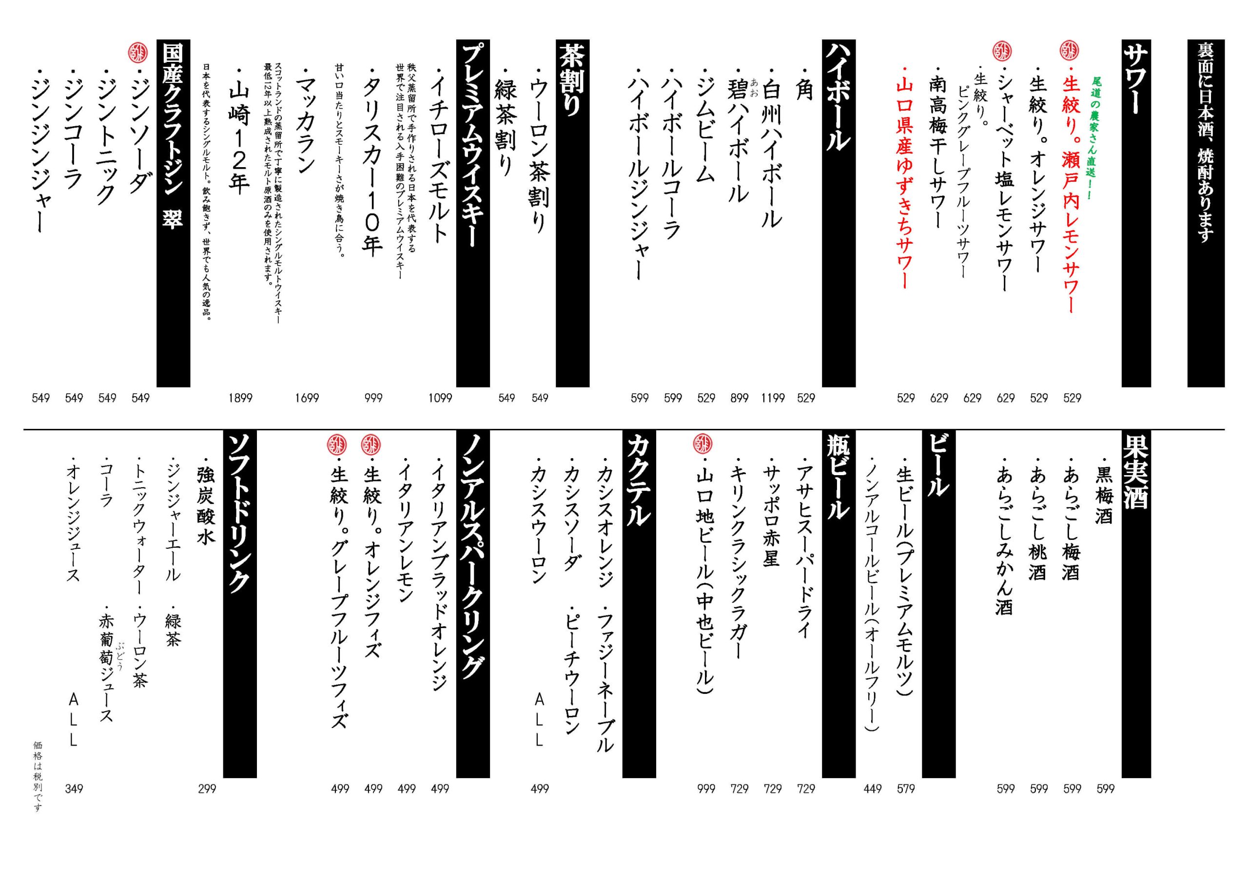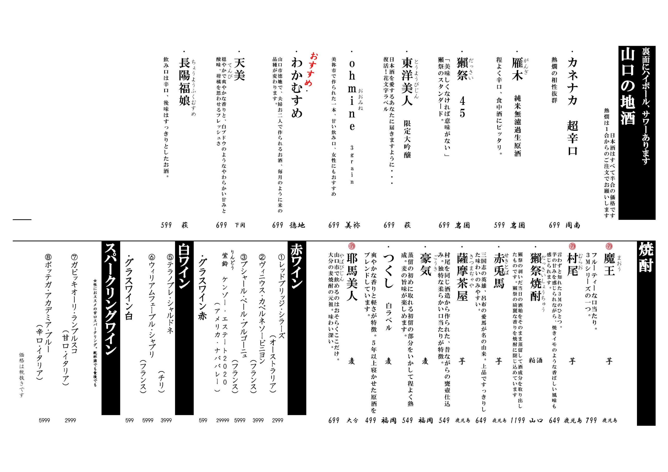 | 営業時間 | 月~木 16:00~23:00 金・土 16:00~24:00 |